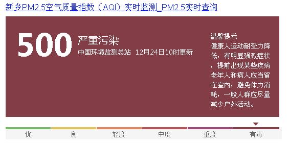 從昨日起,新鄉(xiāng)地區(qū)進(jìn)入嚴(yán)重污染天氣,空氣污染程度遠(yuǎn)超500值,屬于重度污染。且新鄉(xiāng)市重污染天氣預(yù)警應(yīng)急響應(yīng)升級為一級(紅色)預(yù)警響應(yīng),市區(qū)車輛限行,幼兒園、中小學(xué)今天停課。鑒于近期空氣質(zhì)量過差,中信化工在此提醒所有員工謹(jǐn)慎出行。